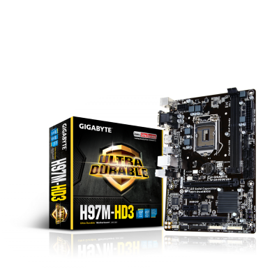 Материнская плата Gigabyte GA-H97M-HD3 (Socket 1150, intel H97, 2*DDR3 1600, VGA (HDMI, D-Sub, DVI-D), PCI-Ex16, PCI, Gb Lan, Audio, RAID, USB 3.0, SATA 3.0, mATX)